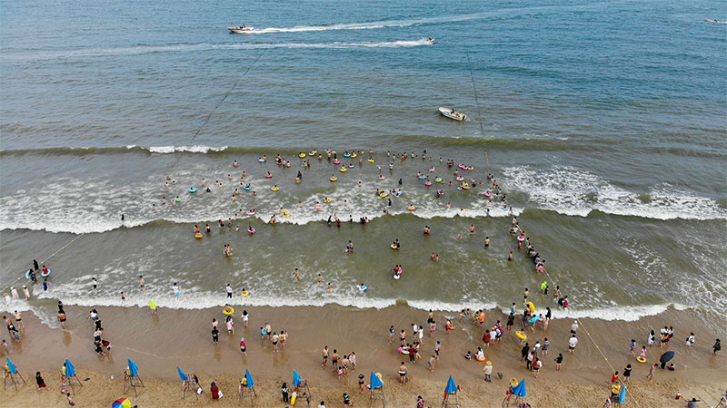 阳江海陵岛大角湾风景名胜区,位于广东省阳江市海陵岛闸坡镇内,是国家AAAAA级著名的旅游景点。是集海泳、度假、食海鲜、购海味于一体的综合型滨海旅游区框架。海陵岛闸波大角湾,面积14.7万平方米,大角湾滩长2.45公里,宽50-60米,螺线形湾似巨大的牛角,故名“大角湾”。大角湾海水湛蓝,沙质洁净,可进行日光浴、海水浴和沙浴。马尾岛位于海陵岛西南端,与闸坡镇山岭相连,海岸线曲折多湾,最长沙环为1公里,三面环海,实为半岛。岛上林荫遍布,沿曲径前行,有巨石列布海滩,或浑圆平整,或突兀峻峭,虎伏狮立,形状奇特。这里是海岛的最西角,为观日落的最佳地点,当晚霞满天时,许多游人驻足于此等待“马尾夕照”。岛上有沙滩排球、足球、沙滩牵引伞、沙滩赛马、骆驼沙滩游、激光射击等体育设施,让您尽情享受激情生活。大角湾是海陵岛知名度最高的景点,与阳西沙扒月亮湾并称为“姐妹湾”。简介来源于:百度百科